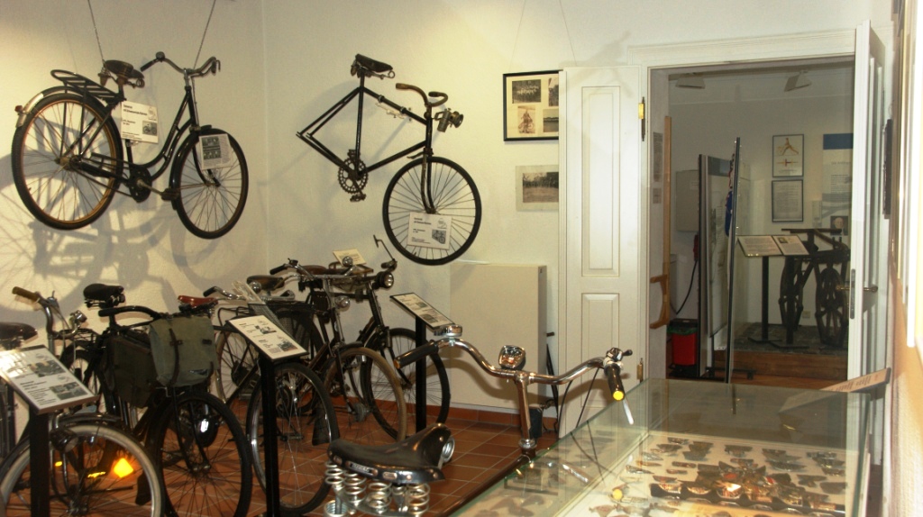 An den Wänden des Museums hängen Plakate bekannter Fahrradfabriken, Fotos aus allen Jahrhunderten, in der Kunstabteilung finden sich Plakate mit Motiven der Künstler Toulouse- Lautrec, Otmar Alt, Friedel Klemm und Oliver Schollenberger. Also wirklich beeindruckend.