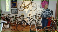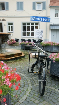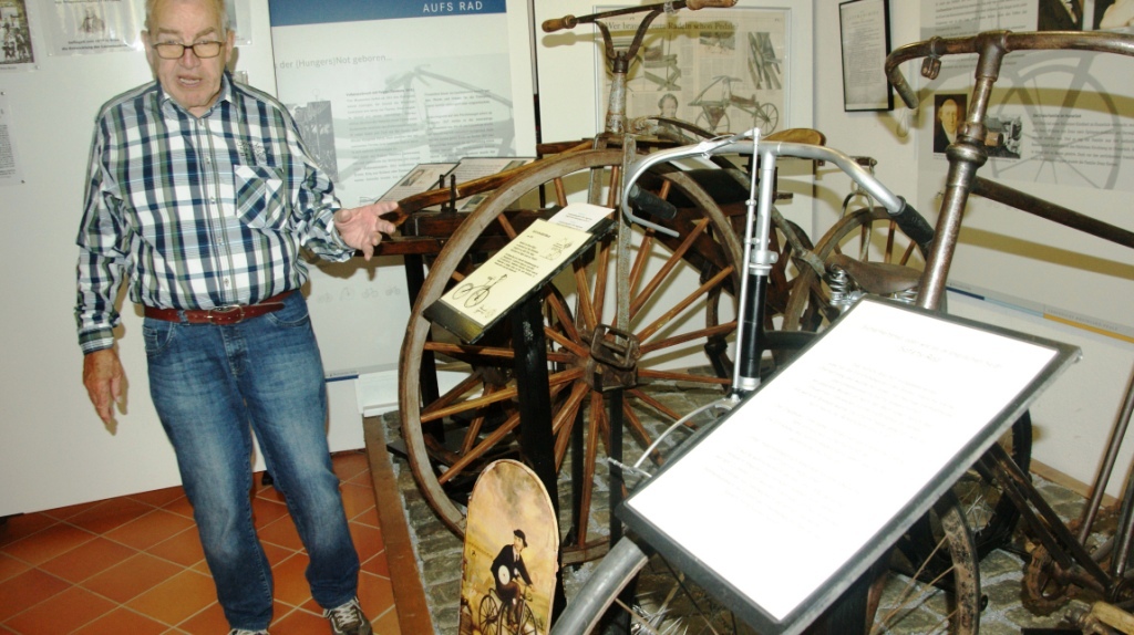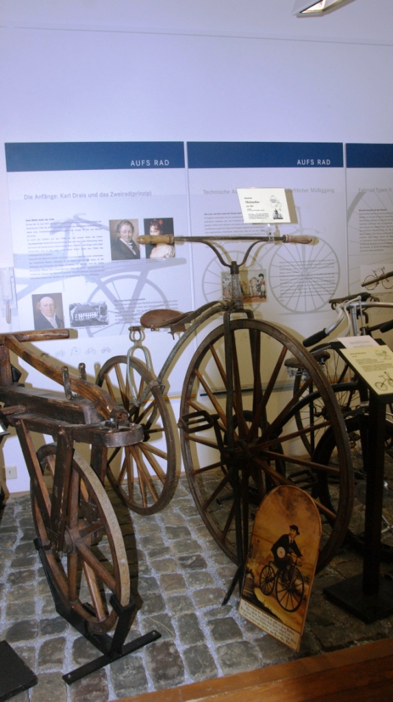 Schautafeln, Bilder und Exponate dokumentieren die Entwicklungsgeschichte des Fahrrads. Besonders erfreut war ich, die von Technik etc. null Ahnung hat, dass wir eine Führung bekamen. Ein sehr radbegeisterter Mitarbeiter des Museums erklärte und beantwortete jede Frage zu Antrieb, Bremsen, Beleuchtung, Schaltung, Bekleidung und Historik. Jedes Rad hat eine Geschichte, und er erzählte sie gerne. Wir wurden eingeladen „am Rad zu drehen“, durften anfassen, aufsitzen und begreifen…