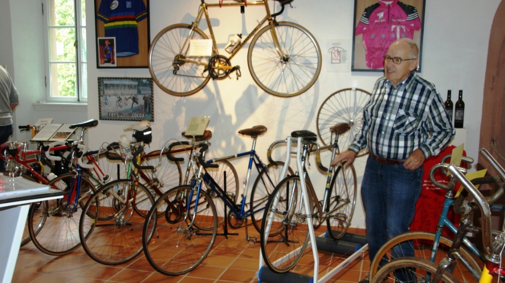 Passend zu diesem Thema: Ein Besuch im „Rheinhessischen Fahrradmuseum“ Gau-Algesheim. Einen würdigen Platz hat es seit 2002 im ehemaligen Kurmainzer Schloss Ardeck gefunden. Die Idee eine solch geartete Kulturstätte ins Leben zu rufen, hatte der Sporthistoriker Heinz-Egon Rösch, den Aufbau übernahmen in Zusammenarbeit die Stadt Gau-Algesheim, der ortsansässige Radsportverein 1898 und der Radsportverein Rheinhessen. Toll, informativ und liebevoll haben sie es gemacht. Chapeau!!