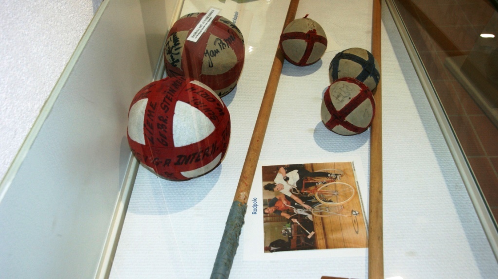 In der Sportabteilung sind neben all den Rädern zum Kunstfahren, Einradfahren, Polospiel, Rennen, Trikots mit Unterschriften des Teams Telekom und andere Fanartikel ausgestellt.