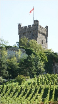 Es ist immer wieder ein schöner Spaziergang hinauf zur Burg. Zu erreichen ist sie entweder über die Treppen vom Bürgermeister-Neff-Platz aus oder auch, etwas leichter, z.B. über die Schloßbergstraße. Das Gelände ist parkähnlich angelegt, bietet fantastische Fotomotive und herrliche Ausblicke auf die Stadt, Rüdesheim, Bingerbrück, den Mäuseturm und die Rochuskapelle, insbesondere, wenn Sie es schaffen, die unzähligen Stufen rauf auf den Bergfried (dem Turm mit der Fahne) zu erklimmen. An den lauschigsten Plätzen laden Bänke zum Verweilen und Genießen ein, und ein Spielplatz für die Kleinen ist auch vorhanden. Im Burghof selbst kommen Geschichtsinteressierte auf ihre Kosten: Neben einem tiefen Brunnen, gibt’s Sarkophage und Säulenstümpfe zu bestaunen. |