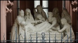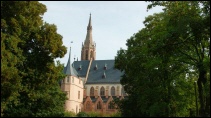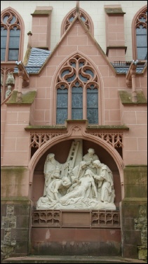 Es ist schon eine recht fromme Atmosphäre, die einen hier oben umfängt und ihren Höhepunkt im Anblick der Rochuskapelle erreicht. Was für ein beeindruckender Bau, diese dreischiffige Kirche in neugotischem Stil, die für mich das Wahrzeichen Bingens ist, so schön leuchtet sie in ihrem weißen Außenputz, abgesetzt mit Bauteilen aus rotem Sandstein, hoch oben, weithin sichtbar, auf dem Rochusberg. Tja, und was für eine Geschichte: Erbaut 1666 zu Ehren des Pestheiligen Sankt Rochus nach einem Schwur des Binger Amtmanns Baron von Dehren, um so die Pest zu stoppen, die, aus Holland über den Seeweg eingeschleppt, auch in Bingen viele Todesopfer forderte. Weiterer Inhalt des Versprechens war, einen Rochus-Feiertag und eine jährliche Dankeswallfahrt einzuführen. Tja, versprochen ist versprochen, und noch heute findet Ende August das einwöchige Rochusfest oben auf dem Berge statt. |