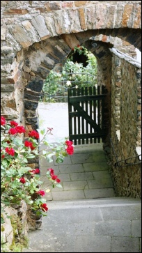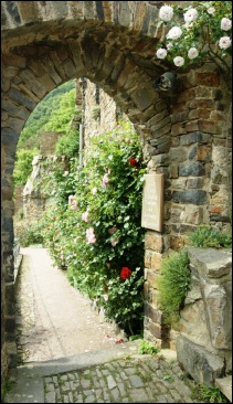 Welch ein Glück, dass ich die Königin der Blumen noch zugenüge bewundern durfte, bevor das Wetter so richtig seine Kapriolen schlug und es Rosen regnen ließ, denn wir machten einen Ausflug zur Burg Sooneck im Nachbarort Niederheimbach. Was soll ich sagen, uns empfing Rheinromantik pur. Rosen über Rosen, in allen Farben und Arten ranken dort und lassen an Dornröschen denken… Malerisch auf einem Felsgrat, wie aus ihm gewachsen, thront diese Raubritterburg seit dem 11. Jahrhundert und ist damit eine der ältesten Burgen am Mittelrhein. |