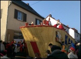 Tja, es gibt noch mehr Geschichten um den Beginn der Session alljährlich am 11. November, ein Datum, das noch richtig lange warten lässt, bis es dann so richtig losgeht. Für mich ist der Höhepunkt der närrischen Zeit der Straßenkarneval mit einem traditionellen Umzug. Welch´ Freude, als ich damals als Neubürgerin von Bingen erfuhr, dass der Kempter Carneval Club 1950.e.V. Motivwagen und Fußgruppen durch die Gassen des Stadtteils Kempten ziehen lässt, und das nun schon, wie man dem Clubnamen entnehmen kann, in diesem Jahr zum 66. Mal. |