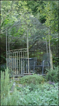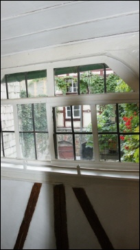 In der oberen Etage gestattete die derzeitige Mieterin der Wohnräume freundlicherweise, einen Blick von den Türen aus in das ein und andere Zimmer zu werfen (die Gebrüder Petit wohnen in Belgien und sind nur ab und an in Bacharach). Wie stil- und liebevoll eingerichtet..ach, hätte ich das Haus doch gesehen, als es zur Vermietung stand. Welch ein Traum, in so einem Schmuckkästchen der Kultur zu wohnen. Ich muss zugeben, dass schon etwas Neid in mir hochstieg und er wurde noch größer, als man uns einlud, den Garten zu besichtigen. |