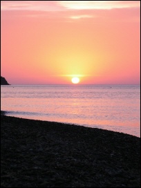 Weil auch Edelsteine so blitzen, haben die Menschen die Inseln „Diamanteninseln“ genannt. Jede Insel trägt in ihrem Namen den Namen eines Edelsteins. Sie heißen RUBINA; SAPHIRA und JADIS. Nun, auf den Diamanteninseln also, begab es sich vor langer, langer Zeit, da brachte es die Sonne am Ende ihres Arbeitstages gar nicht fertig, sich von dem zauberhaften Anblick loszureißen. Sie dachte sich, als der Mond bereits auf dem Weg war, um sie abzulösen, sie könne immer diesen Platz am Himmel einnehmen, da sie es doch hier am aller-, allerschönsten fand. So ließ sie es, als der Moment des täglichen Wechsels mit dem Mond und der kühlenden Nacht gekommen war, einfach nicht zu, dass der Mond ihren Platz einnahm und blieb am Himmel stehen. |