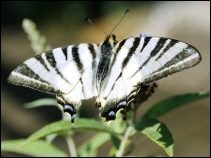Zurück zu den Faltern: Wussten Sie, das Bingen mit bis zu 50-60 Tagfalterarten zu den üppigen Schmetterlingsrevieren Deutschlands zählt? Ich hätte das nicht gedacht, bis ich es in der „Allgemeinen Zeitung“ vom 24.7.2018 gelesen habe. Ich hoffe inständig, dass seit dieser Zeit nicht noch mehr Arten vom Aussterben bedroht sind oder gar für immer verschwunden bleiben. Gründe dafür sind Klimawandel, Düngung, Umweltgifte, Verlust ihrer Lebensräume und Monokulturen in Land- und Fortwirtschaft. Bitte, wenn Sie den Schmetterlingen helfen wollen, so lassen Sie die Giftspritze in Ihrem Garten unangetastet und dann werden sie Sie besuchen in Ihrem Gartenparadies: Aurorafalter, Schwalbenschwanz, Admiral, Tagpfauenauge, Kleiner und Großer Fuchs, Segelfalter und der zauberhafte Schmetterling, dem ich das nachfolgende Farbelfchen schrieb: |