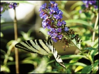 Leider habe ich keine Wildblumenwiese, die das Paradies für Falter wäre, denn sie ernähren sich hauptsächlich von Nektar. Mit einem langen Rüssel können sie diese zuckerhaltige Flüssigkeit aus den Blütenkelchen saugen. Platz 2 auf der Liste nimmt der Lavendel ein, der zuhauf in meinem Zaubergarten wuchert und seinen Duft verströmt. Geschmack ist den Schmetterlingen sehr wichtig, und drum sind Kräuter, wie Thymian, Oregano, Kresse, Majoran, Dill und Fenchel weitere Leibspeisen, die ich ihnen in meiner Kräuterecke serviere. |