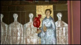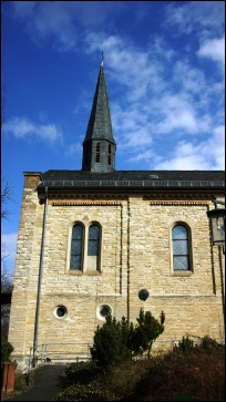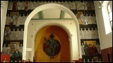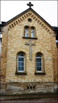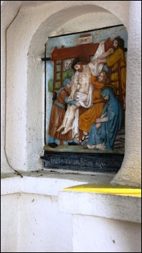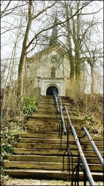 Tja, und natürlich wollte ich diese Kunst fotografisch für Sie und mich festhalten, musste aber feststellen, dass es dafür an Licht fehlte. Nicht ein Lämpchen brannte in der Kapelle. Da niemand da war, den ich darum bitten konnte, die Beleuchtung einzuschalten, aber auch nicht ohne diese Erinnerung gehen wollte, war ich mutig und betätigte einen jeden Schalter, den ich an den Wänden finden konnte und das mit zitternden Händen und der Angst, dass vielleicht der Feueralarm, das Glockengeläut oder ein Notruf aktiviert wird. Nichts passierte, es ward auch kein Licht, und drum müssen Sie und ich uns mit den Fotos in mangelnder Qualität zufrieden geben. |