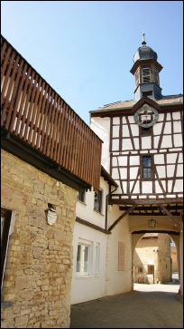 So, ich muss an dieser Stelle aber mein Mitteilungsbedürfnis mal wieder stoppen, denn das Thema heute sind nicht diese Weichtiere, sondern Neu-Bamberg, eine kostbare Perle in Form eines Fachwerkstädtchens, das nur 25 Autominuten, die durch eine naturschöne Gegend führen, von Bingen entfernt ist. 6 Kilometer von Bad Kreuznach gelegen, öffnet sich in Neu-Bamberg das Tor zur Rheinhessischen Schweiz. Ein geschichtsträchtiges Städtchen, war es doch schon in frühgeschichtlicher Zeit besiedelt, was gefundene Steinbeile belegen. Dokumentiert wird eine Besiedelung bereits im 2. bis 3.Jahrhundert nach Christus. |