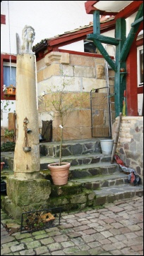 Jetzt ging es weiter durch ein romantisches kleines Fachwerkörtchen, einer Postkartenidylle, die an Liebreiz kaum zu überbieten ist. Die Fachwerkhäuschen in engen gewundenen Gassen, detailverliebt gestaltet, mit entzückenden Fenstern, prachtvollen alten Türen und Toren, ideenreich dekoriert. Ab und an, hier und da, hatte ich Glück und konnte einen Blick in einen der privaten Innenhöfe oder Gärten erhaschen, der begeisterte. |