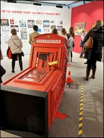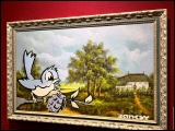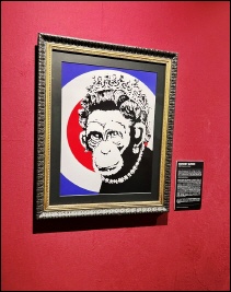 Aber noch einmal zu den ausgestellten Werken: Banksy betitelt die Ausstellung als „Fake Show“ und hat sie nicht autorisiert. Ihm würde schon mal gar nicht gefallen, dass man Eintritt bezahlen muss, um seine Arbeiten zu sehen. Lehnt er doch jede Vermarktung seiner Kunst ab. Aber er hat kein Urheberrecht an seinen Bildern. Die Ausstellungsstücke sind die Arbeit von 4 internationalen Streetart-Künstlern, und für mich haben diese „Fälschungen“ der Hommage an ein Genie keinen Abbruch getan. |
