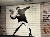 Ja, ich bin ein Fan dieses rätselhaften, vermutlich bekanntesten Streetart-Künstlers der Welt, der seinen bürgerlichen Namen und seine Identität standhaft geheim hält. Nichts weiß man über ihn, noch nicht einmal ob er Mann oder Frau ist. Mich berühren und faszinieren die treffenden, aufrüttelnden Botschaften seiner gesellschaftskritischen Werke, die an so vielen Stellen auf der Welt plötzlich auftauchen, Aufsehen erregen und zum Nachdenken anregen. |