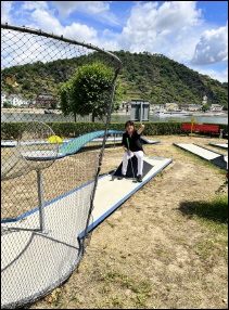 Und nun Tatata.....Trommelwirbel fürs Sahnehäubchen aufs Ganze: Es gibt auch eine angeschlossene Minigolfanlage!!!! Ich, bekannt als Queen der Begeisterung, war bei meinem ersten Besuch mal wieder völlig aus dem Häuschen. So was von großartig. Direkt am Rhein minigolfen….Klasse! und dann noch als Siegerin vom Platz gehen…was für eine Freude! |