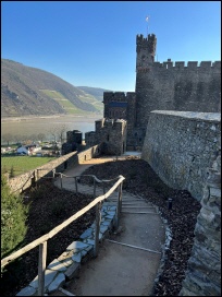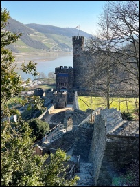 Mir ist aufgefallen, dass, obwohl nirgendwo auf der Welt die Burgen so eng beisammen liegen, wie hier am Rhein, ich Ihnen nicht wirklich viele davon vorgestellt habe. Also, ist heut die Burg Reichenstein dran. Im 11. Jahrhundert erbaut auf einem Felsvorsprung oberhalb des schönen Städtchens Trechtingshausen, zählt sie zu den ältesten Burgen am Rhein. |