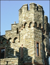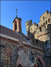 Na, und ich könnte jetzt noch viel von der sagenhaften Vergangenheit erzählen, aber ich fasse mich kurz und sage Ihnen nur noch, wem man für das heutige beeindruckende Ambiente und die wiederbelebte imposante Architektur dankbar sein kann: Es war die Industriellenfamilie Kirsch-Puricelli, die während der Rheinromantik im 19. Jahrhundert die Burg Reichenstein aus dem Dornröschenschlaf holte, sie zu einer Wohnburg im neugotischen Stil umbauen und weitere Wohnbauten und einen Aussichtsturm errichten ließ (lt. Wikipedia). |