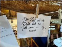 Ich würde jetzt gern mehr erzählen, von dem was da mit viel Einsatz gesammelt wurde und entstanden ist, aber ich habe ja die Poesiealben zum Thema genommen und nicht die Sammlung aus der Frühgeschichte, den vergangenen Jahrhunderten oder die Nachbildung eines einstigen Tante-Emma-Ladens und einer Schusterwerkstatt. Es fällt mir schwer, zumal ich so freundlich von einem zum Museumskreis gehörenden Ehepaar empfangen und mit allerlei Wissenswertem gefüttert wurde, natürlich auch, was die Anfänge des Poesiealbums betrifft. Aber hier nur kurz, denn Sie werden bei Ihrem Museumsbesuch nächsten Sonntag, Infotafeln darüber finden, wie aus einem Stammbuch ein Freundschaftsbuch wurde. |