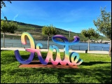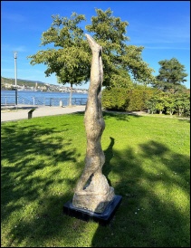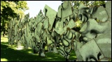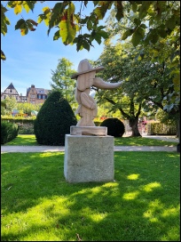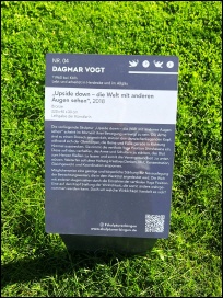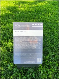 Die erste Skulptur, die wir entdeckten, war die Nr. 9, „Fliegen“ Das Werk gefällt mir. Auch wenn mir nicht wirklich gleich klar war, was der Künstler damit zum Ausdruck bringen möchte, aber ein Schild war hier, wie auch bei den anderen Kunstwerken, zur kurzen Erläuterung angebracht. Versehen ist es auch für diejenigen, die mehr begleitende Informationen möchten und - im Gegensatz zu mir - ein Smartphone haben, mit einem QR-Code. Im Internet habe ich dann erfahren, dass auch Führungen gebucht werden können, ach, und einen Lageplan habe ich dort auch gefunden. Hätte ich mal vorher gegoogelt! |