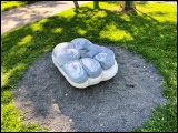 Ich habe zum Beispiel bei „Cloud Number Nine“ von der Bildhauerin Emma Jääskeläinen „nur“ eine Wolke aus Marmor gesehen und erst beim Lesen des Hinweisschildes feststellen müssen, dass es eine ausgestreckte Hand darstellt. Bei meiner Ankunft wurde das Kunstwerk von einer jungen Frau als Sitzkissen benutzt, verständlich, da es ja in seiner bauschigen Form dazu einlädt. Laut Beschreibung, sollen 4 Stahlsaiten zwischen Daumen und Ringfinger gespannt sein, die von dieser Verlockung abhalten sollen…aber die waren nicht mehr vorhanden. |