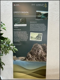 Tja, und dann ist ja da noch das seit der Expo 2000 bestehende Besucherzentrum, das über die Mittelrheinlandschaft, die Kultur, die Menschen der Region und natürlich über den Mythos Loreley Auskunft gibt. (Öffnungszeiten: Vom 30.3. bis 31.10., täglich von 10-17 Uhr, MONTAGS GESCHLOSSEN). So großartig, liebevoll und faszinierend werden dort die reiche Geschichte, Kultur, die Entstehung der Landschaft, das Leben am Rhein und noch so viel mehr weitergegeben. Ach ja, und einen wirklich gut bestückten Souvenirladen gibt’s dort, mit viel Literatur über die Loreley, individuellen Geschenken, wie Handwerkskunst aus der Region, Weingläser, Trinkbecher, Schals, Ansichtskarten, Handtücher und einer pfiffigen Loreley-Modekollektion. |