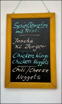 Wir haben die Speisekarte nahezu durch, und auch Spießbraten, Flammkuchen, Pizzen, Currywurst, Salate und Pommes sind lecker! (Alle Speisen auch zum Mitnehmen) |
