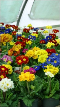 Also..worauf warten? Bei meinem Besuch vor einer Woche waren zwar noch einige Flächen frei, aber Töpfe mit strahlendweißen Schneeglöckchen, Tulpen in allen Farben, rosa Nelken. leuchtendroten Ranunkeln und kunterbunten Primeln schmückten schon die Gewächshäuser. |