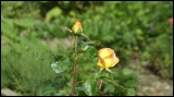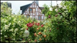 Eine Sammlung von Strauch-, Kletter- , Beet-, Rambler- und Edelrosen, historischen, englischen und auch modernen Sorten, in Farbnuancen von gelb, weiß, orange, apricot, hellrot und purpurn. Tja, und die Vokabeln für den Duft, den diese Pracht verbreitet, habe ich nicht parat. Das, was da an Wohlgerüchen auf den verschlungenen Duftpfaden zu erhaschen ist, ist eine unbeschreibliche betörende Rosensüße, die ich nicht mit Worten wiedergeben kann. |