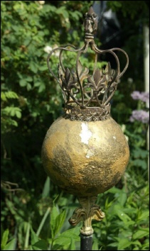 Aber trotz all ihrer Schönheit und Vielfalt ist für mich die Königin der Blumen und das Symbol der Liebe nicht die alleinige Hauptdarstellerin in diesem Garten, sondern sie muss sich die Rolle teilen, denn fantasievolle Dekorationen lassen unfassbar reizvolle Gartenbilder entstehen. Rosen lehnen sich an schmiedeeiserne Kunstobjekte, an Statuen. Wie anziehend wirken die Gartenschätze, wenn man sie mit üppigen Blüten umgibt, und auch sie bringen die Harmonie der Rosen zur Geltung. Tatsache ist, dass hier alles so fantastisch zusammenspielt, dass faszinierende Impressionen entstanden sind, geheimnisvoll, romantisch verspielt, und alles wirkt bezaubernd "zufällig". |
