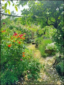 Ein friedvoller Ort, der die Seele berührt, wurde geschaffen, voller zauberhafter Überraschungen, romantisch verborgen und eingewoben in üppiger Blütenpracht. Doch dieser Garten weiß seine Geheimnisse zu hüten und lässt sich nicht wirklich auf die Schnelle erobern. Ich denke, selbst nach wiederholten Besuchen wird man wieder und wieder etwas noch nicht Gesehenes finden. Versteckte Wege mit Charme führen durch das Paradies, sanft geschwungen und in einen wunderschönen Mantel aus Blattwerk und Blüten gehüllt. |