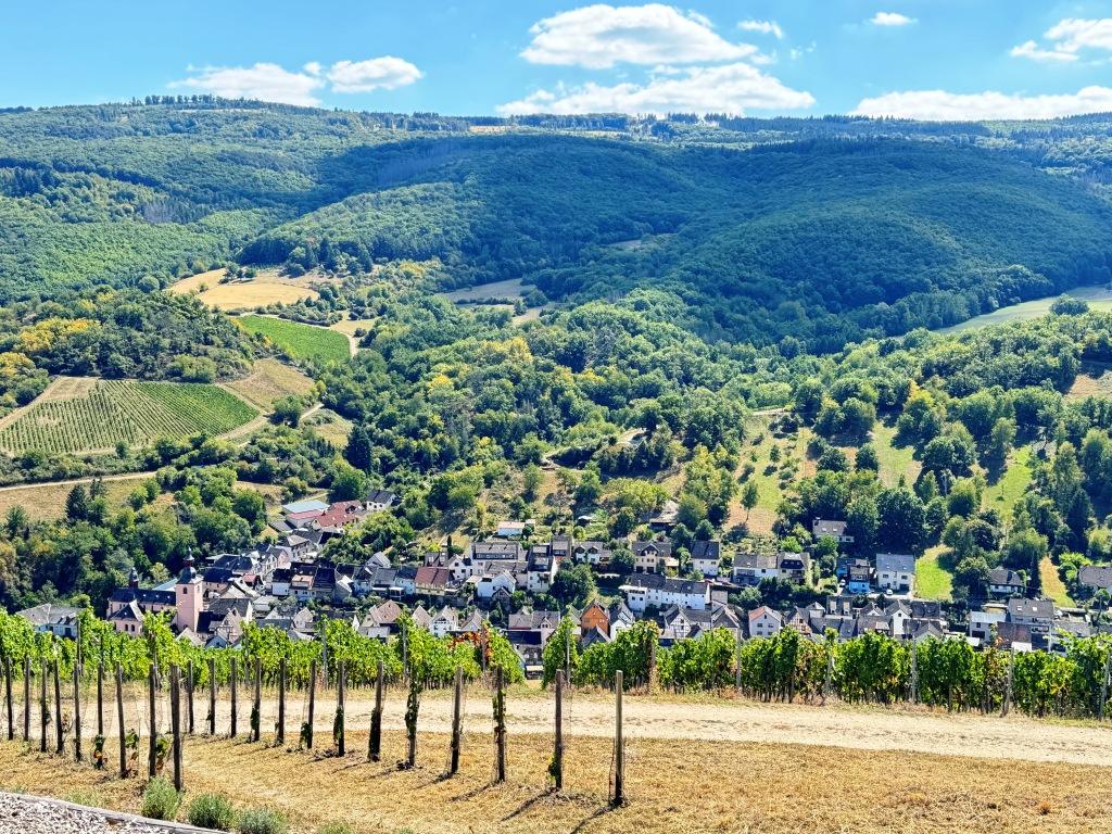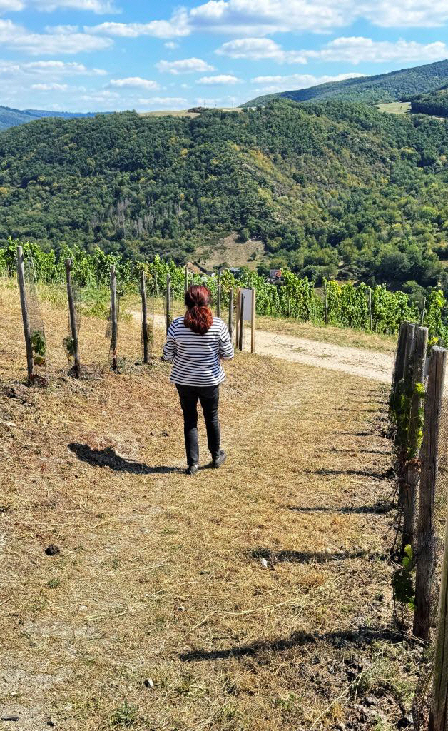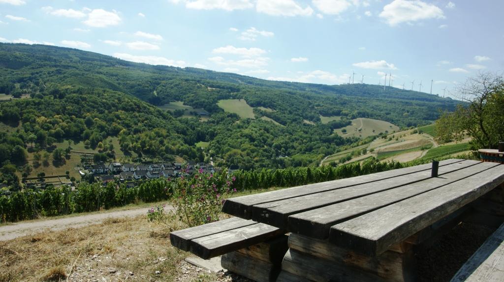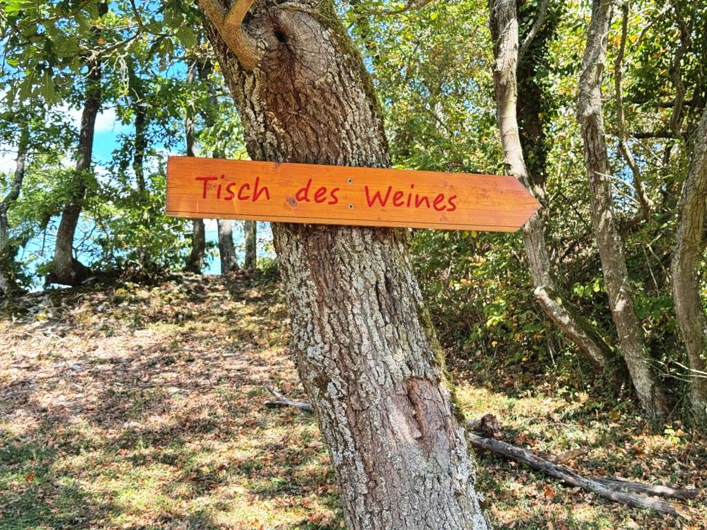 Aber jetzt möchte ich doch mit Ihnen was Schönes teilen, und in Ermangelung von einem Ausflugstipp, bleibt mir nur eines: Ich verrate Ihnen heute meinen Zufluchtsort ganz in der Nähe unseres Hauses, an dem ich Ruhe und Kraft finde, auftanken kann: Es ist der „Tisch des Weines“ in Oberheimbach.